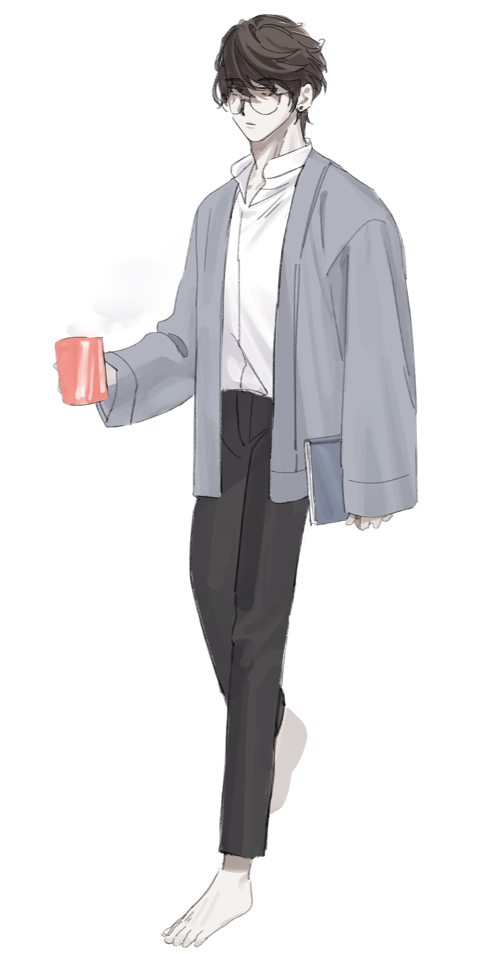 옷을 편하게 입어 크게 드러나지 않지만 체중은 조금 나가는 편. 말랑살. 운동을 멀리한다. 발에는 굳은살이 없지만 손에는 많다.